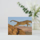 Cette belle photo de cougre sautant d'un côté de montagne avec la vallée et le ciel bleu en arrière - plan
