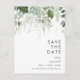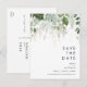 We designed this greenery and gold leaf save the date postcard to complete your simple yet elegant boho wedding. It features modern green and white eucalyptus leaf, fern foliage, a succulent flower, and minimal gold foil leaves. These elements give the feel of a whimsical watercolor enchanted forest, perfect for any rustic, bohemian wedding! Feel free to customize and make it your own; also, feel free to look through the rest of the collection for matching and coordinating products!