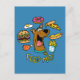 Découvrez Scooby-Doo affamé dans ce graphique alimentaire "Feed Me !" ! Voir tous ses produits de restauration rapide favoris flottent autour de sa tête, comme les cheeseburgers et la pizza!