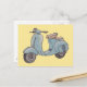 Une aquarelle originale et une peinture à l'encre d'un scooter sur un arrière - plan jaune.