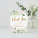 Belle carte postale de remerciement de graduation avec des fleurs pastel et de la verdure aquarelle qui présente de jolies lettres de script de couleur or et le nom et l'année de promotion du diplômé sur un fond blanc élégant. Le dos est une jolie florale avec un message de remerciement personnalisé et l'adresse de retour. Visitez cette boutique pour des articles de fête de graduation coordonnés et d'autres options de couleur !
