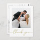 Ce design comprend un script de calligraphie or simple moderne, un minimaliste minimaliste minimaliste de deux photos, un couple photo mariage, un modèle contemporain épuré, une police de texte de script de typographie élégante, un mariage photo cartes de remerciement, un design personnalisé customisé, une police de lettrage doré manuscrit, un script original simpliste et élégant, une calligraphie mariage budget amical merci cartes