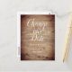 Cette carte rustique de changement de date en bois dispose d'un script élégant changer notre date au-dessus de vos détails ensemble dans élégante typographie moderne sur un arrière - plan de panneaux de bois rustique. Le verso contient des détails supplémentaires, y compris votre site Web mariage, avec votre adresse de retour et l'espace pour l'adresse de votre destinataire. Conçu par Thisisnotme©