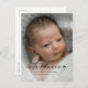 Script Présentation de Faire-part de naissance photo bébé et Carte de remerciements. Le dos comprend une deuxième photo et un message de remerciement que vous pouvez personnaliser ou supprimer si vous préférez écrire à la main votre remerciement. Cliquez sur le bouton personnaliser/modifier pour customiser cette conception.