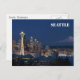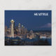 La carte postale est montrée avec une photo de l'horizon nocturne de Seattle. Customisez cet objet ou achetez tel quel. Image sous licence