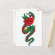 Carte Postale Serpent enveloppé autour d'un tatouage rose rouge