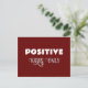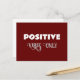 "Positive Vibes Only" - Un petit coup de pouce pour se concentrer sur le bien et lâcher de la négativité. Cette carte postale est un simple rappel pour embrasser la positivité et s'entourer d'énergie stimulante.