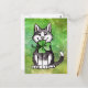 Un chat noir et blanc tenant un shamrock à trois feuilles dans sa bouche, pour la Saint Patrick, ou juste pour le plaisir !