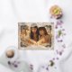 La dentelle fleurie à elle seule présente des fleurs poinsettia et des rubans, entourés d'un cadre que l'on peut voir à travers. Il est élégant et célèbre les vacances avec beauté. Votre photo est la pièce maîtresse, et votre propre salutation est au dos de la carte. J'espère que vous aimez ce design spécial. Bénédiction !