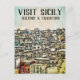 Dessin simulant l'ancienne affiche touristique avec l'image de la ville de Sicile - Italie.