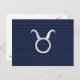 Un signe du zodiaque Taureau chromé argenté sur un fond d'impression de fibre de carbone bleu marine de style moderne. Un design urbain et branché pour une excellente idée de cadeau personnalisé.