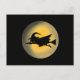 Carte postale imprimée avec Silhouette de Sorcière Volante par TheFabricSeal est une sorcière effrayante avec son balai en sorcière volante et son casquette de sorcière en forme conique pointue, tandis qu'elle parcourt rapidement à l'obscurité du ciel nocturne et passe devant la pleine lune d'Halloween jaune.