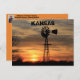 Une photo d'un moulin à vent Kansas, Arbre, Silhouettes, avec des cieux colorés, qui est au nord de Hutchinson Kansas USA. A l'extérieur dans le pays qui est lumineux et coloré sur une carte POST.
