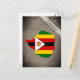 Postkarte mit einem Umriss von Simbabwe, gefärbt in den Farben der Nationalflagge.