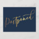 Carte Postale Simple Elegant Navy & Gold Postpond Faire-part