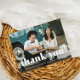 Carte postale simple et fantaisiste mariage avec typographie blanche et une photo sur le devant, avec un message de remerciement modifiable avec adresse de retour sur le dos.