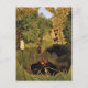 Une carte postale d'art représentant le tableau de 1906, Singes joyeux, du peintre français Henri Rousseau (1844–1910). La scène capture un paysage de jungle luxuriant où des gorilles s'étreignent au milieu des buissons, peints dans le style d'art primitif caractéristique de Rousseau.