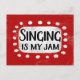 "Singing Is My Jam" est un design de texte amusant avec une forme d'accent blanc entourée de points texturés fantaisistes blancs.