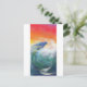Une sirène aux cheveux bleus chevauche une vague crêtée bleu-vert sous un ciel jaune et rose riche. Sa longue queue écailleuse balaie l'eau, changeant du vert au bleu selon les variations de lumière et d'ombre.