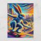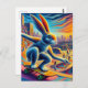 Carte Postale Skateboard Rabbit Coloré Amusement Surreal