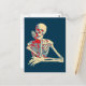 Joyeux squelette souriant avec sa main osseuse reposant sur son menton, aux couleurs rétro.