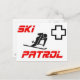 "Ski Patrol" écrit, autour d'un graphique de skieur, avec une croix de patrouille dans le coin droit.