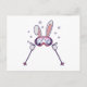 Carte Postale Ski Rabbit avec bâtons de ski et lunettes de ski