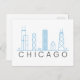 Carte postale avec une ligne d'horizon moderne et graphique de Chicago et le texte "Chicago" ci-dessous.