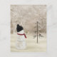 Charmant bonhomme de neige avec étoile d'or dans les bois d'hiver avec pin et oiseau.