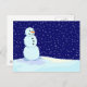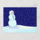 Ce bonhomme de neige est assis dans une chute de neige nocturne et sourit. La lumière de la lune illumine doucement notre ami enneigé, ses boutons au charbon de bois et sa bouche, et son nez de carotte.