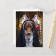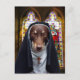 Autre photo mignonne de la série anthropomorphique de cartes postales : The Adventures of Ally, The Australian Kelpie dog. Ici, elle est habillée comme une nonne avec une habitude et une croix. Elle est à l'intérieur de l'église se préparant à la messe. De beaux vitraux se découvrent dans l'arrière - plan. Photo Louise DockerParcourez la série Ally ici