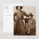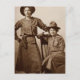 photo vintage de deux femmes du vieux ouest. L'un est assis et l'autre est debout, Ils ont tous deux des jupes avec des franges et portent des casquettes. L'une a une arme dans un holster à la taille