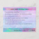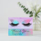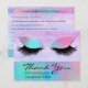 Carte postale moderne tendance Iridescente Chic Merci Lash Care propose des paupières iridescentes modernes et branchées avec de longs cils sur un arrière - plan violet avec le texte "Merci" et votre texte supplémentaire en typographie élégante. Au verso, ajoutez vos instructions personnalisées de soins de fouille. Personnalisez en modifiant le texte dans les zones de texte fournies. Conçu par ©Evco Studio www.zazzle.com/store/evcostudio
