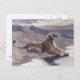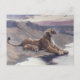 Lioness se repose à côté de son petit sur un rivage sablonneux au bord de l'eau. Elle veille prudemment à tout danger. Magnifique scène animalière de soins maternels.