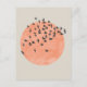 Un troupeau d'oiseaux en silhouette devant un soleil rougeâtre sur un arrière - plan beige.