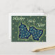 L'imagerie créative, les effets, sont le résultat de ce unique, conçu, dessin, de deux, bleu marine, coloré, cloches avec étoiles jaunes et Holiday, salutation affichée, à travers, étoile, bleu nuit, ciel.