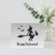 Carte Postale Sorcière Sur Un Broom Silver Grey Et Black Hallowe