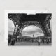 Sous la célèbre tour Eiffel, cette photo capture le grand nombre de visiteurs de l'icône. Sous son cadre en acier, cette carte postale présente une photo en noir et blanc de centaines de visiteurs qui apprécient leur visite.