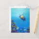Une peinture acrylique d'une tortue de mer avec des poissons et la vie marine autour d'un récif de corail représenté dans tous nos océans.