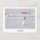Carte postale souvenir finlandaise avec cygnes muets nageant dans l'eau froide glacée avec île couverte de glace et de neige sur l'arrière - plan.