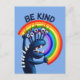 Carte postale de gentillesse avec un personnage drôle tenant un arc-en-ciel et le texte "Be Kind". Parce qu'il faut parfois se rappeler qu'être un être humain gentil rend le monde un peu meilleur.