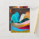 A vibrant, textured digital illustration featuring rounded fantasy mountains set against a dark sky full of golden stars. The style is modern and abstract, with a heavy emphasis on color contrast and layered textures.