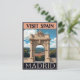 A majestic vintage-style travel poster inviting you to Visit Spain and the grand city of Madrid. This stunning illustration features an ornate, classical stone archway and statue, which frames a picturesque view of the red-tiled rooftops of the city below and the rolling Spanish hills. The artwork perfectly captures the grand architecture and scenic beauty of the region. Ideal for travel enthusiasts, collectors of retro illustration, and lovers of Spanish culture and history.