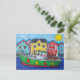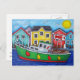 Scène colorée d'un bateau de pêche qui transporte beaucoup de homard dans une belle ville des Maritimes par l'artiste populaire Lisa Lorenz maintenant sur une carte postale.