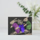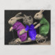 Jolie et unique photo vintage colorée de deux lapins et un chaton vêtu de vêtements de personnes et chevauchant un scooter.