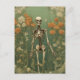 Un squelette et des fleurs sur un arrière - plan vert pastel dans un style vintage d'art généré par l'IA