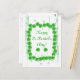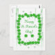 Carte postale avec mon design lumineux de trèfle à quatre feuilles et de jolies étoiles et des serpentins. Le texte dit "Bonne Saint Patrick !"