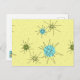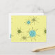 Ce Yellow Iconic Atomic Starbursts motif de carte postale possède des étoiles atomiques emblématiques. C'est vrai ! L'ancienne école, de couleur jaune arrière - plan avec des taches d'or est la toile de fond parfaite pour le céleri turquoise, apaisant, et les cercles kitsch vert poire. Les taches de couleur sont sporadiquement placées dans différentes tailles avec la superposition de lignes en V noir pour former les starbursts de Spoutnik mod. Conçu dans le style d'un motif des années 50, ce design d'inspiration rétro offre tout ce dont vous avez besoin pour être vraiment moderne du milieu du siècle.