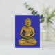 Statue de Bouddha d'or avec bouddha ou bodhisattva dans une pose de méditation sur un arrière - plan bleu vif.