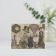 Carte postale industrielle victorienne industrielle Vintage Steampunk avec engrenages industriels, chapeaux et pétticoats, horloges, montgolfières, moteurs à vapeur et plus encore sur un arrière - plan de papier ancien défraîchi.